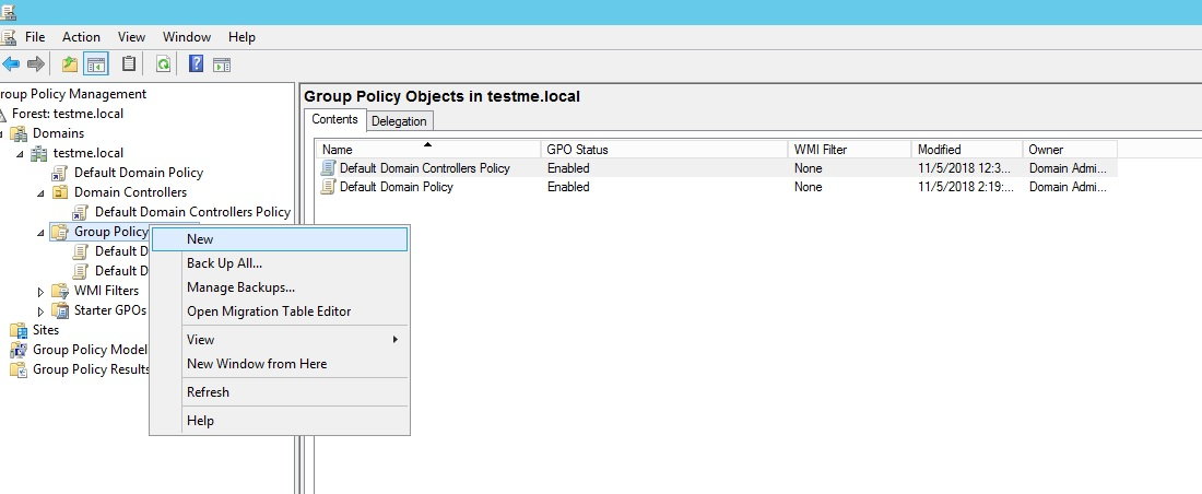 Right-click the Group Policy Objects or the Servers OU and select Create a GPO in this domain, you can link it later or link it directly to the Servers OU…